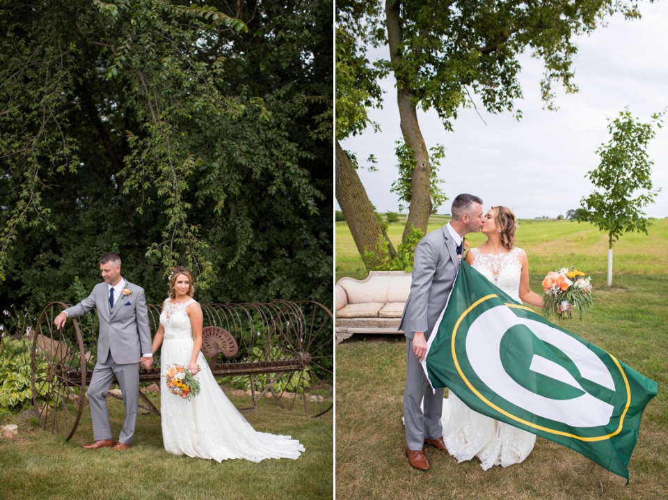 The wedding of this down to earth, loving couple was so much fun! Everyone was there to support and love on this couple! And a Packer’s flag was definitely flown! One of my favorite moments was when Michael pulled me aside and told me that he had a surprise for his new bride! Abby loves Elvis impersonators and was so bummed that on the night of their wedding there was an Elvis impersonator performing just down the road, but they were going to miss it! So Michael arranged for an Elvis to come perform their first dance song!!! The twinkle in his eye while he was telling me this paired with the surprised, shocked and overjoyed face Abby had on realizing what he had done perfectly summed up this day!