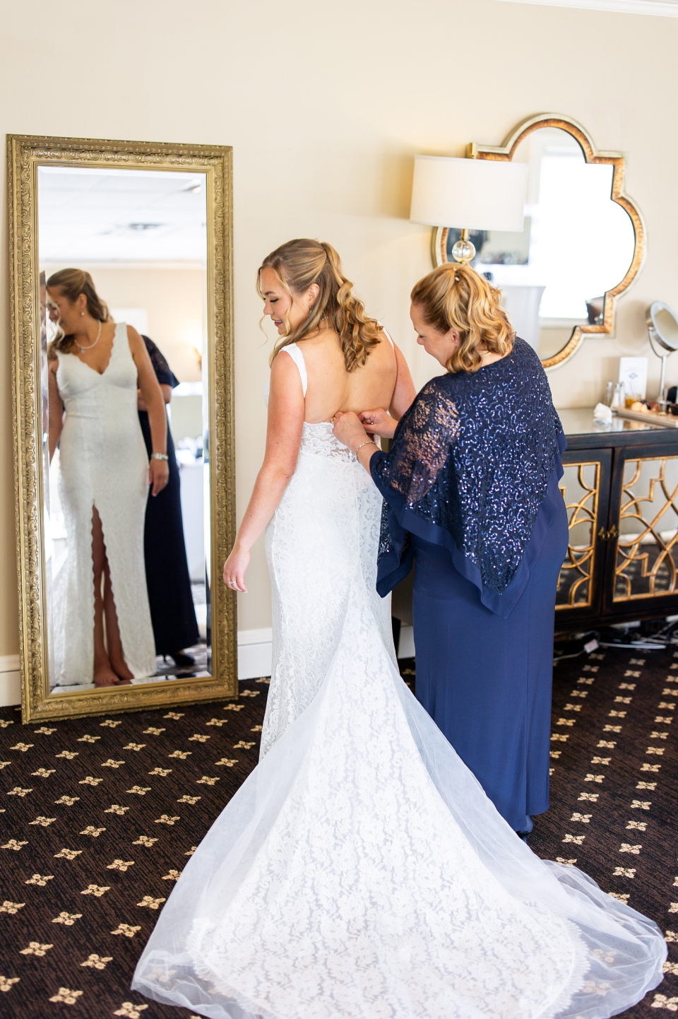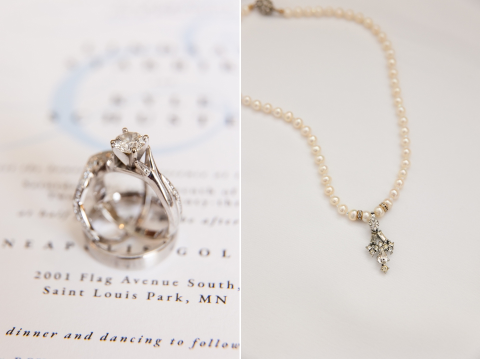 Lindsay & Kyle had such a beautiful wedding day at Minneapolis Golf Club in St. Louis Park! The day started up on the second level of the venue in the bridal suite! Lindsay got her hair done by Lauren Gorjanc and make-up by Soft Glow Makeup before her mom helped her into her wedding dress. It was a beautiful dress from Grace Loves Lace! While the ladies were getting ready, I had fun taking photos of the couple’s details, which included a vintage clutch from the bride’s grandma!