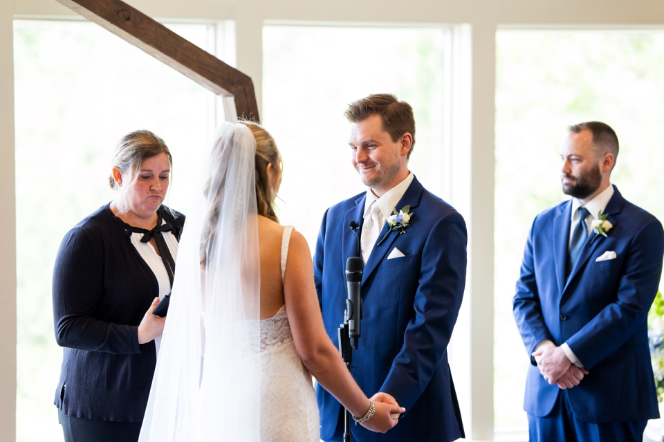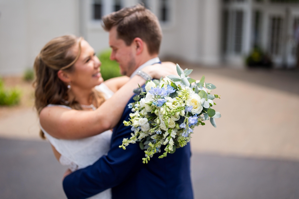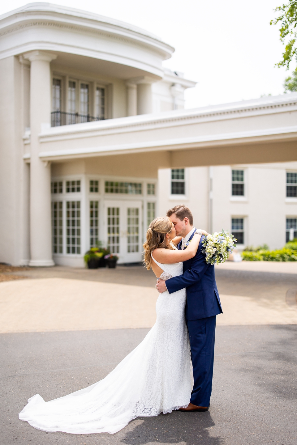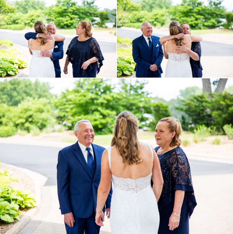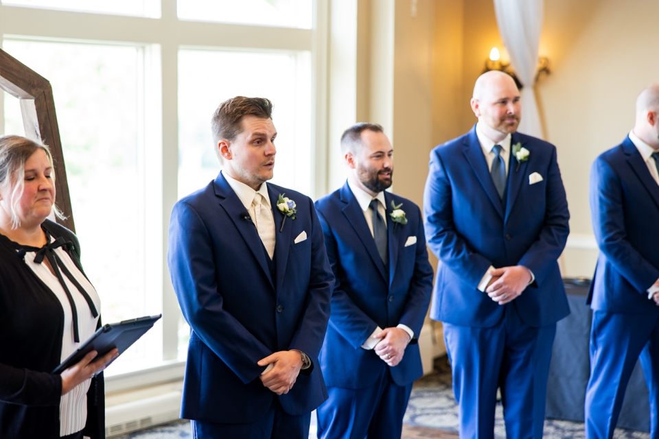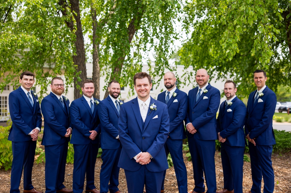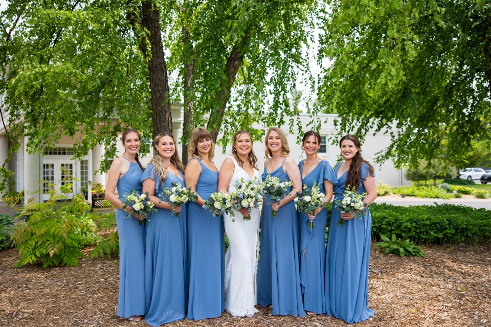 Just before the couple’s first look, Lindsay did a first look with her parents! A special moment that they will remember! The father of the bride looked so proud! Then we did a couple’s first look and Kyle was blown away! This venue has stunning areas for photos, whether it’s cloudy or full sun out. We did couple’s photos and then did wedding party photos! Everyone looked so good! And check out the bouquets from Luna Vinca! Then we did immediate family photos before guests started arriving on the limos provided by Renee’s Limousines.