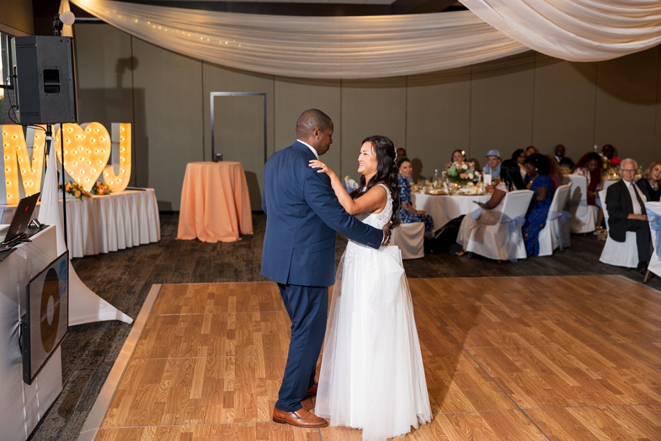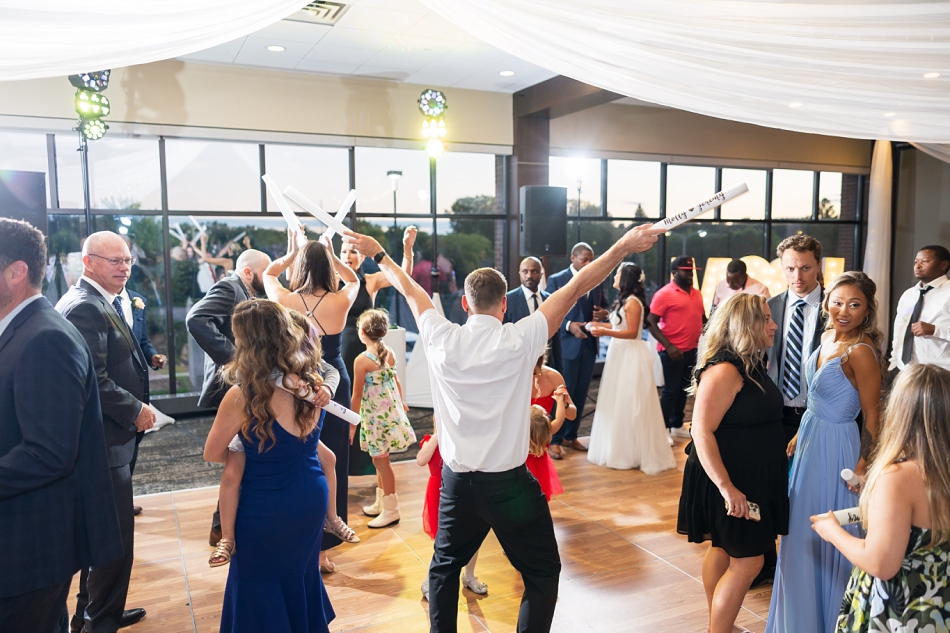 Once the vows were spoken and the rings exchanged, it was time to celebrate! Friends poured into the reception space, which was beautifully decorated with lush floral arrangements from Florals by Claire and elegant linens from Encore Events. Guests danced the night away as Ambient Entertainment kept the energy alive with the perfect mix of songs!