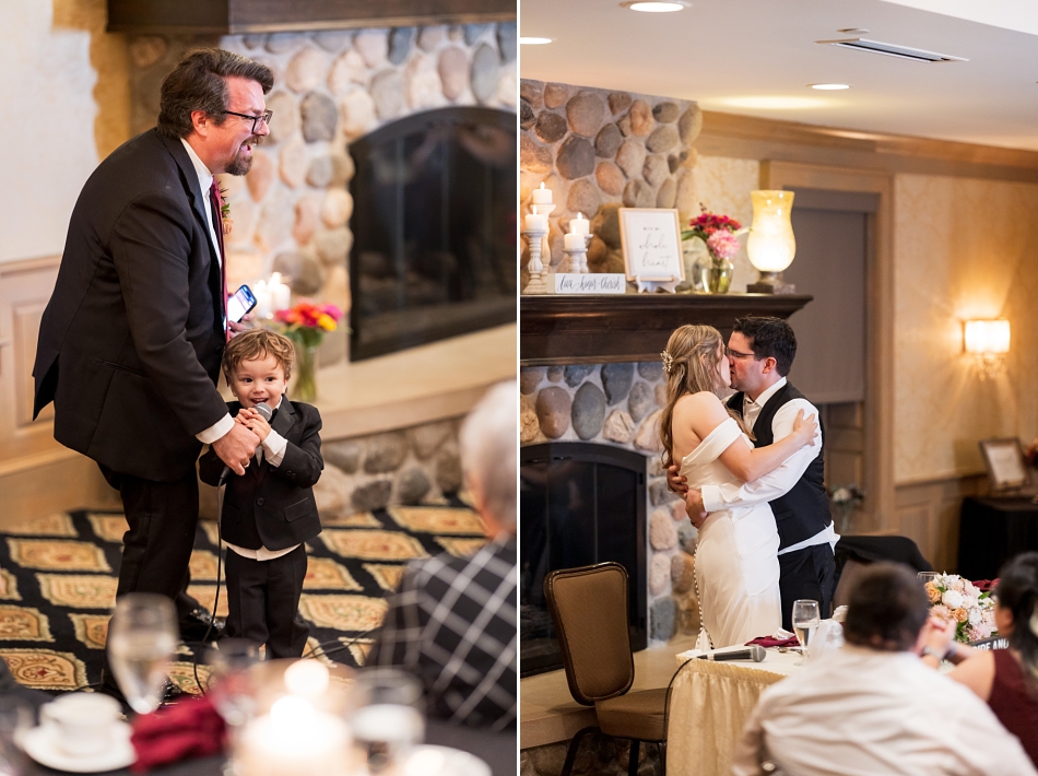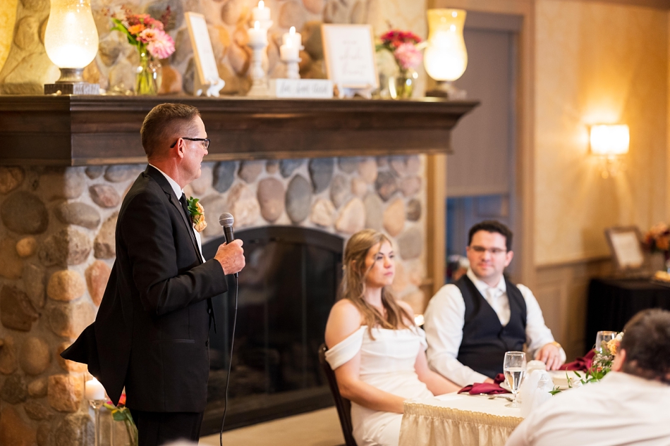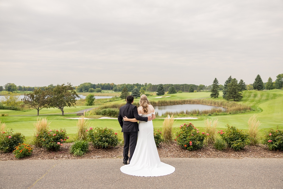After the ceremony, everyone made their way to the Rush Creek Golf Club for an elegant and intimate reception. The upstairs space, overlooking the lush greens of the course, created the most romantic backdrop as the sun set outside. Soft piano and live music by Cole Thomas Music set the mood — adding a timeless, classy touch to the evening.