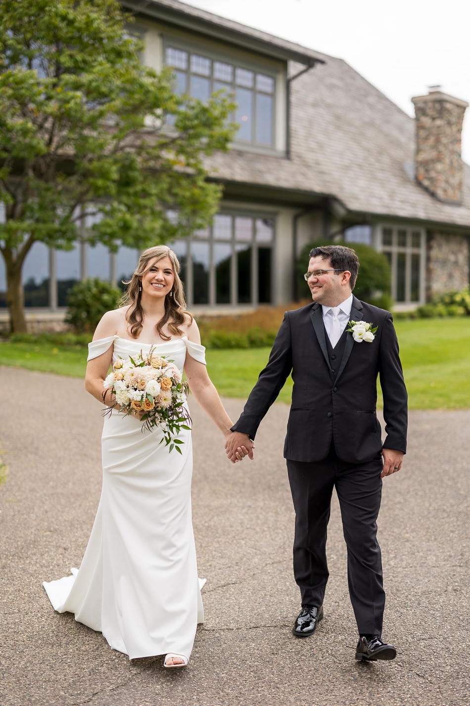 Every detail came together beautifully — from the stunning blooms by Bee Strong Blossoms, to the sweet treat from Nothing Bundt Cakes. The bride looked radiant in her gown from The Wedding Shoppe, with expert alterations by Louise Anderson and flawless hair and makeup by Reflect Salon + Spa Aveda in Plymouth. The bridesmaids complemented her perfectly in dresses from The Wedding Shoppe, while the groom and groomsmen looked sharp in suits from The Black Tux.