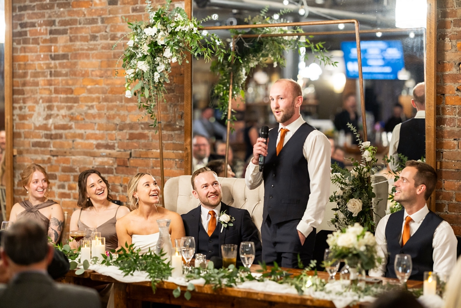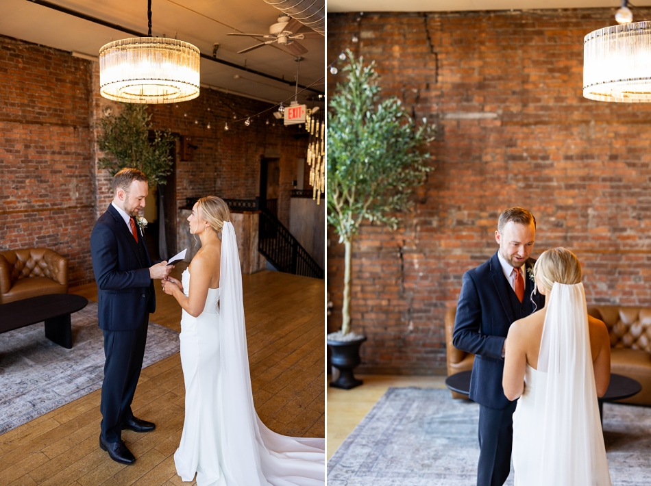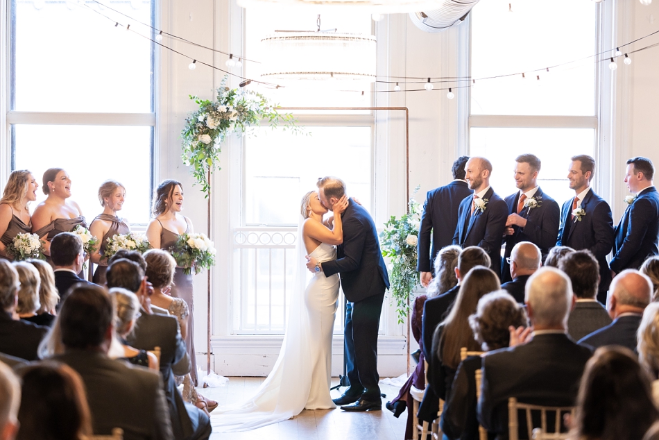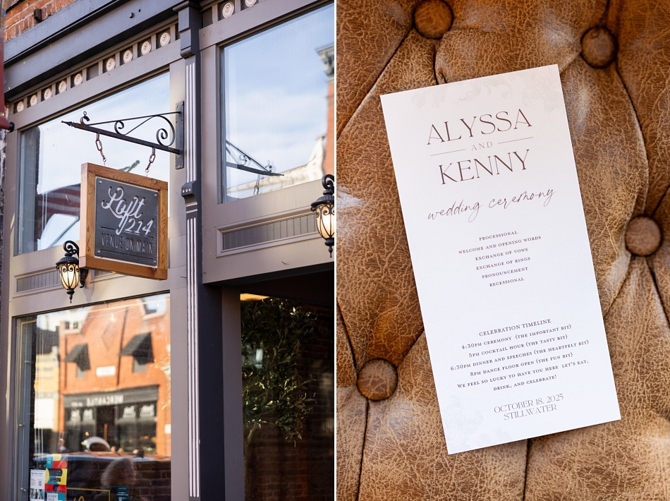With the sun beginning to soften, guests gathered at Loft 214 as the ceremony began. The space was warm, intimate, and beautifully styled, reflecting Alyssa & Kenny’s personalities perfectly. Their vows were heartfelt and the joy in the room was undeniable. When they slipped on their rings from Wedding Day Diamonds, the whole room felt it—the moment they officially became husband and wife.