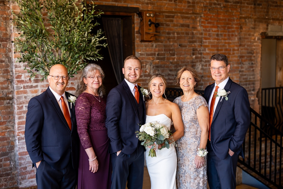Wow—Alyssa & Kenny!!! Their October wedding day at Loft 214 was absolutely bursting with joy, laughter, and so much heart. From the moment Alyssa slipped into her effortlessly elegant Grace Loves Lace gown—perfectly tailored by Evermore—you could feel the magic in the air. She looked radiant, her hair softly curled and styled by Makeup by Purtle, and her glowing bridal makeup perfected by the talented artists at The Beehive Salon.